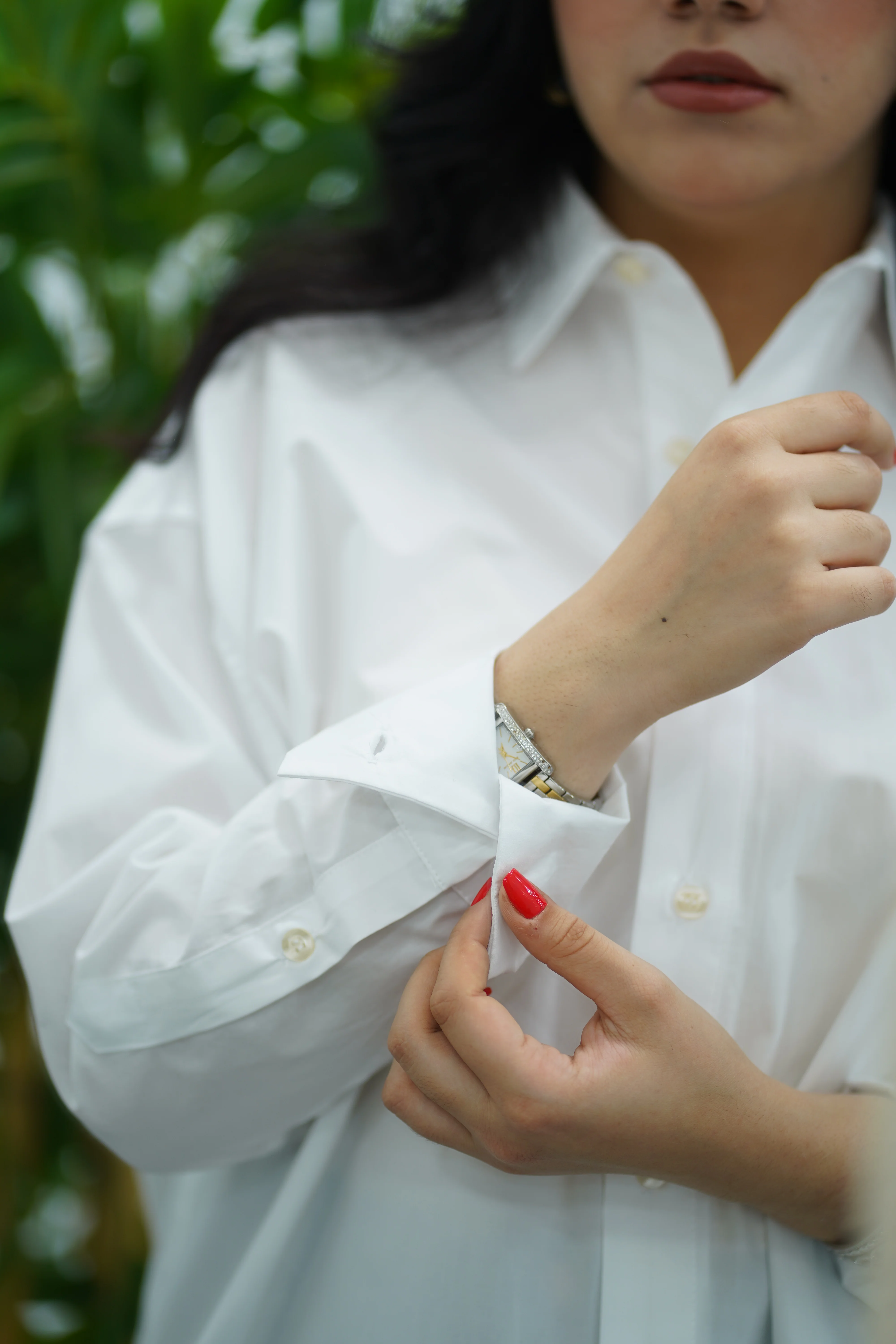 Sa coupe oversize assure un confort optimal tout en offrant un style moderne et décontracté. Confectionnée dans un tissu léger et fluide, elle est parfaite pour être portée rentrée dans un pantalon ou laissée lâche pour un effet chic.