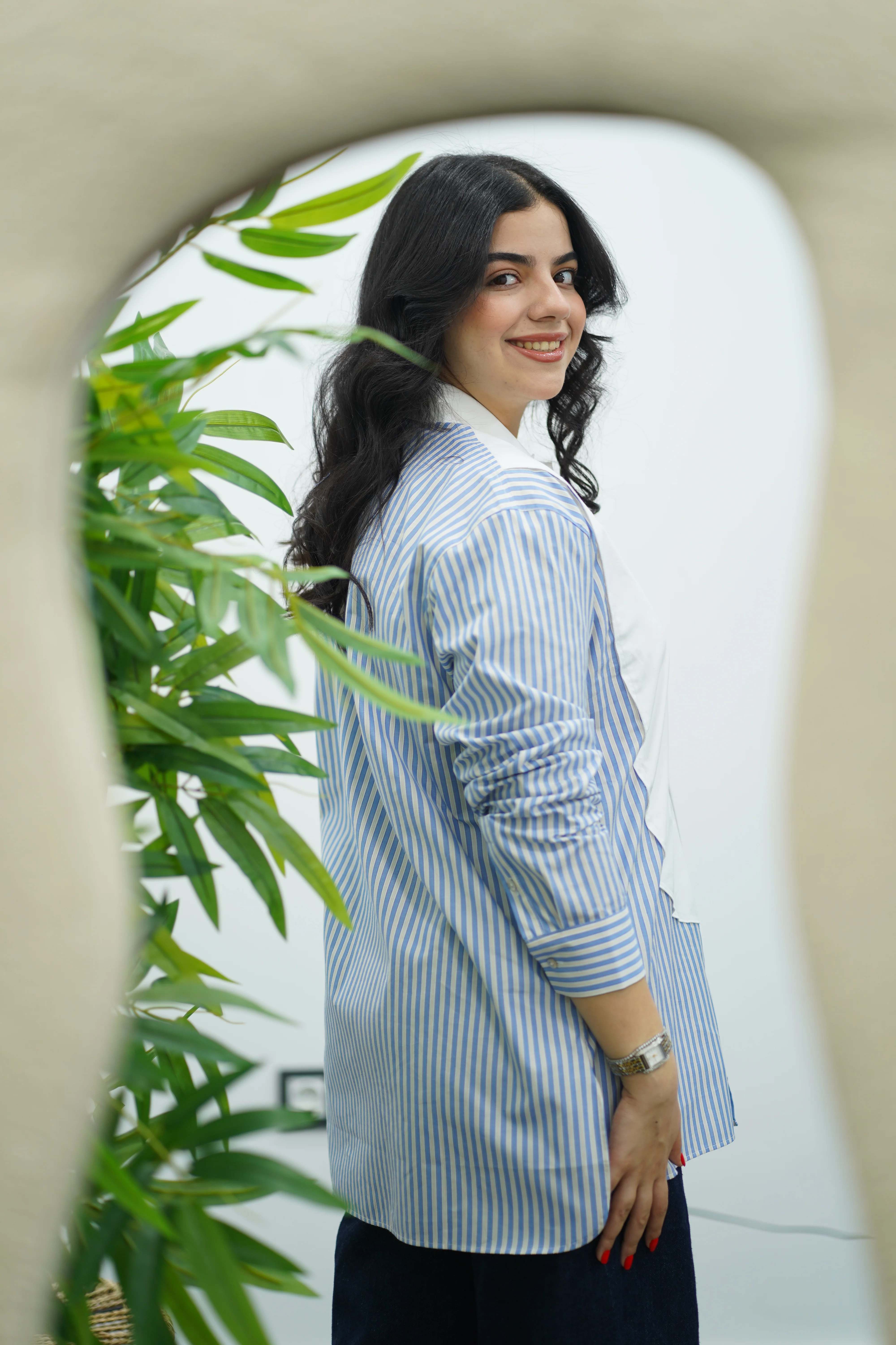 Apportez une dose de bonne humeur à vos tenues avec cette chemise à rayures avec un détail en blanc, confectionnée dans une popeline douce et légère. Sa coupe oversize lui confère une allure moderne et décontractée, parfaite pour les journées où confort et élégance vont de pair.
