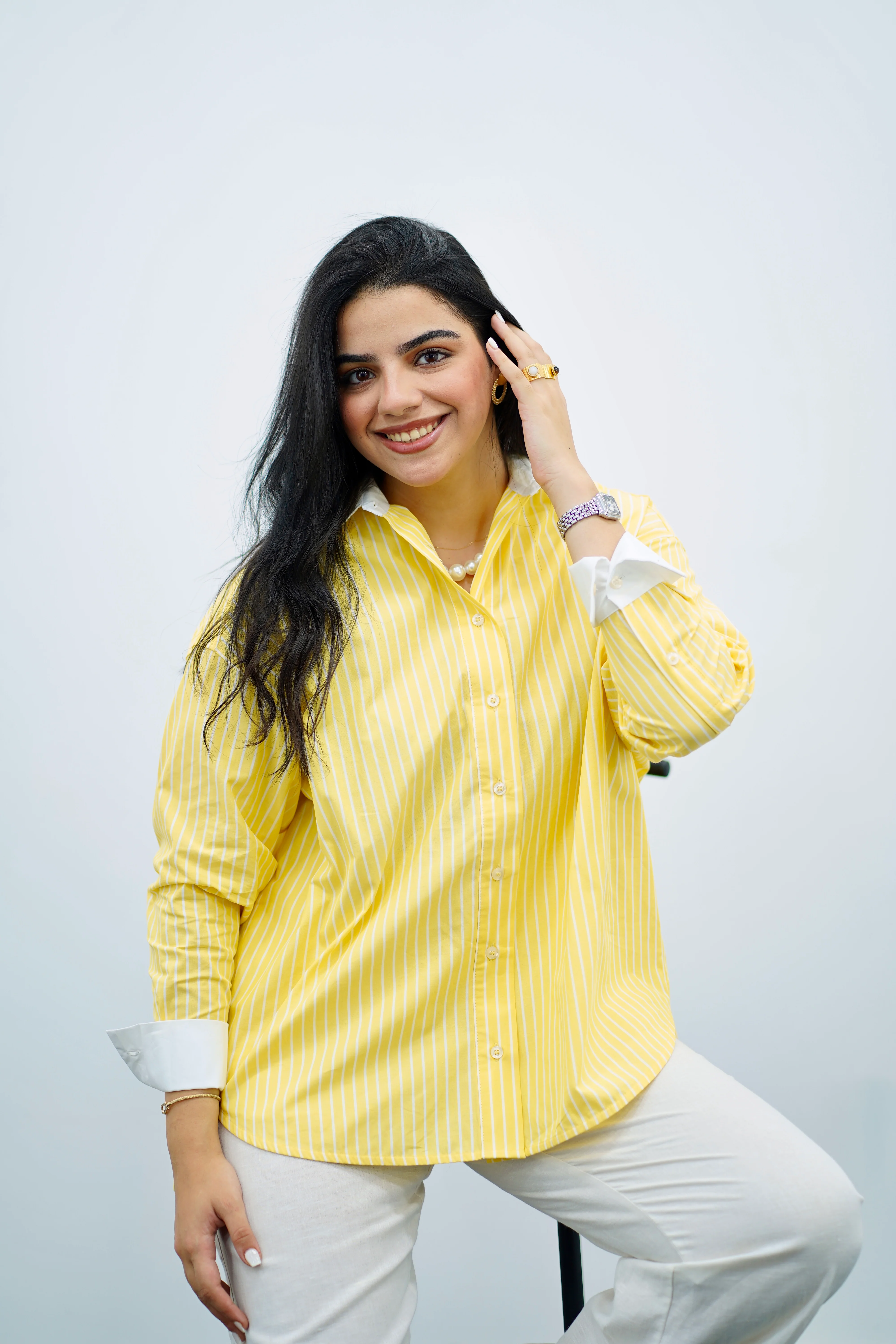 - Chemise ample à rayures jaunes clair, coupe décontractée.