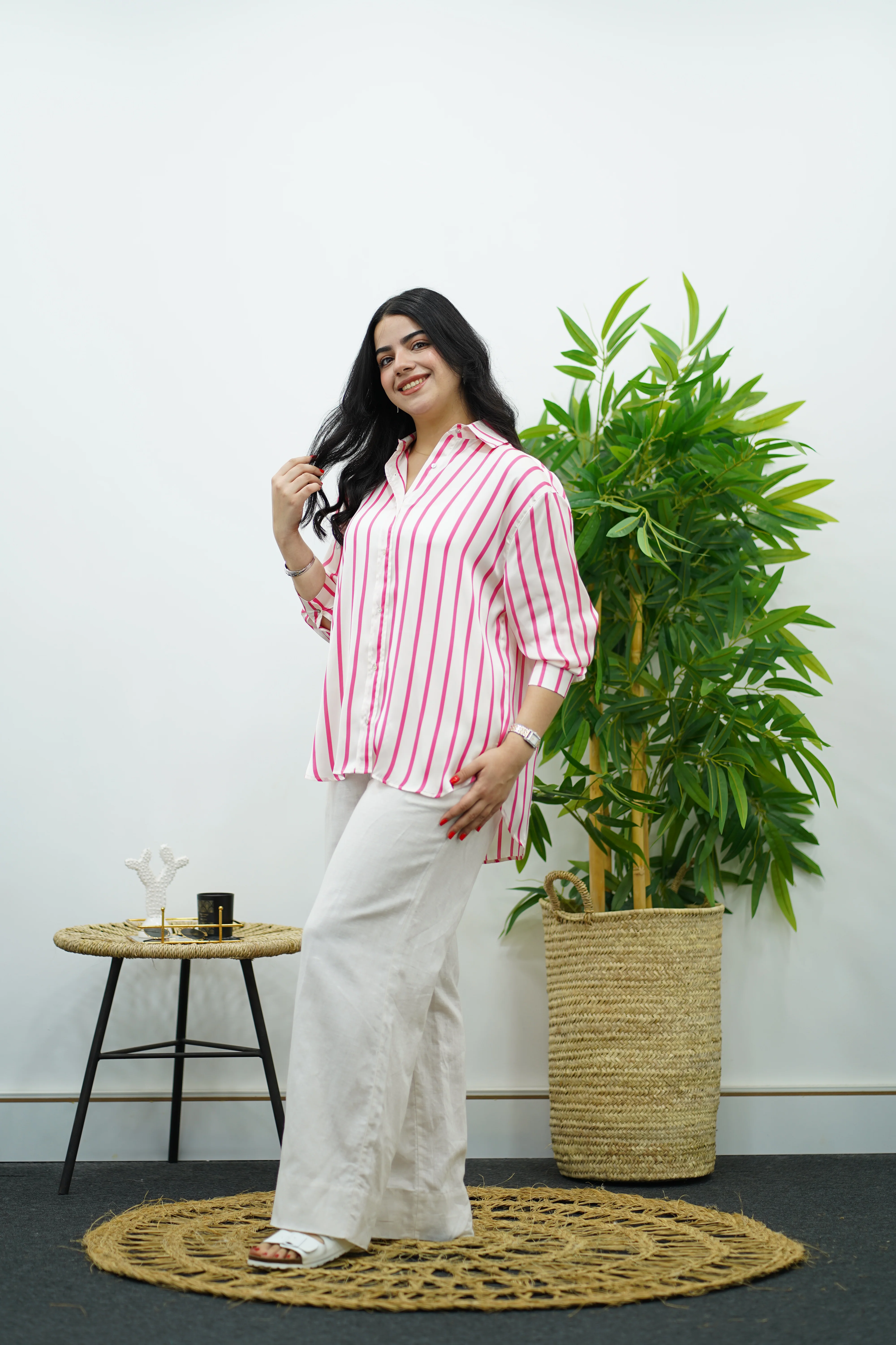 Apportez une touche de raffinement à votre garde-robe avec cette chemise en satin à rayures rose fushia. Son tissu fluide et soyeux assure un confort optimal tout au long de la journée, tandis que son motif rayé intemporel lui confère une allure chic et moderne. Parfaite aussi bien pour un look professionnel que pour une tenue décontractée élégante. Disponible dans toutes les tailles.