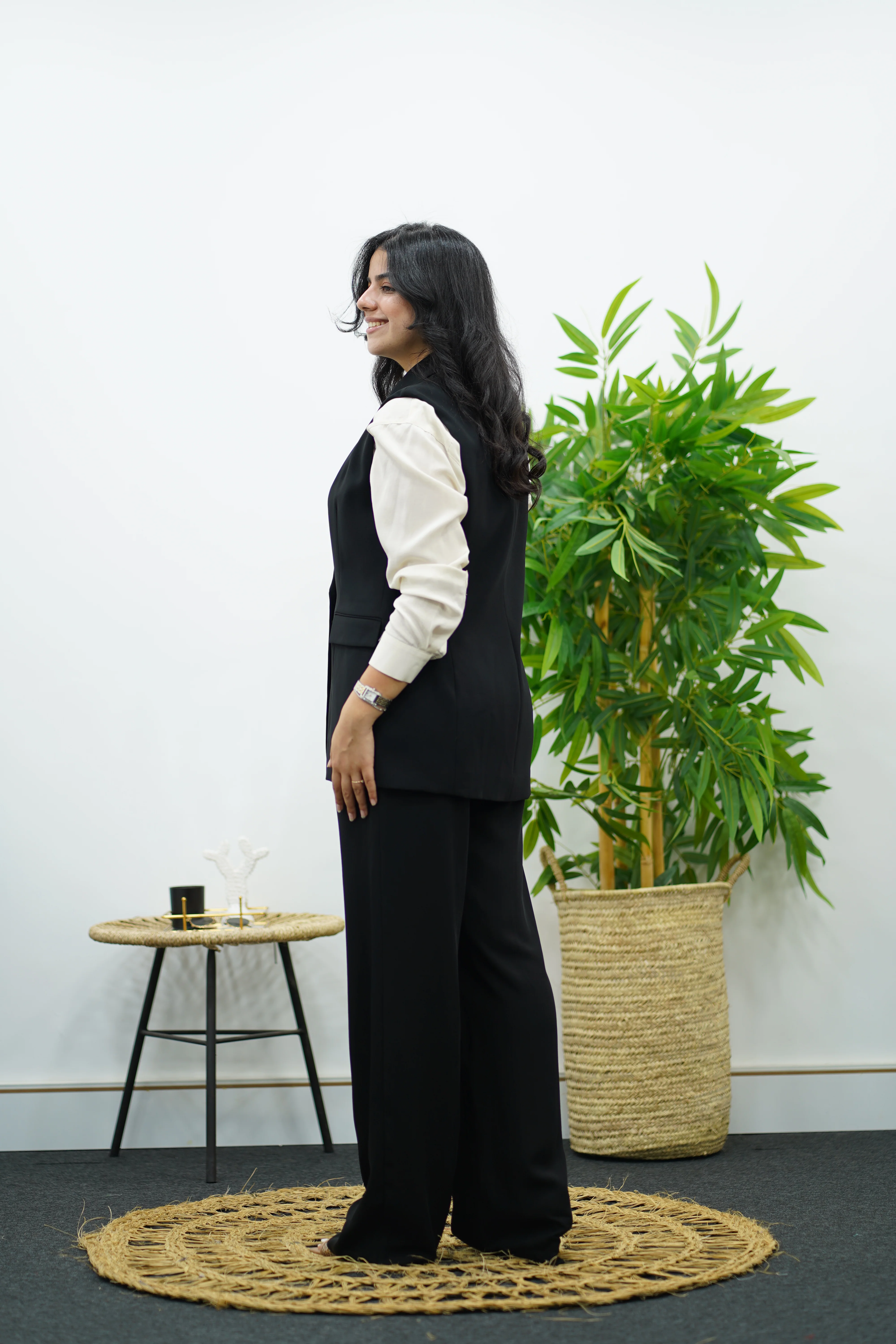 Ajoutez une touche moderne et élégante à votre garde-robe avec ce gilet long.