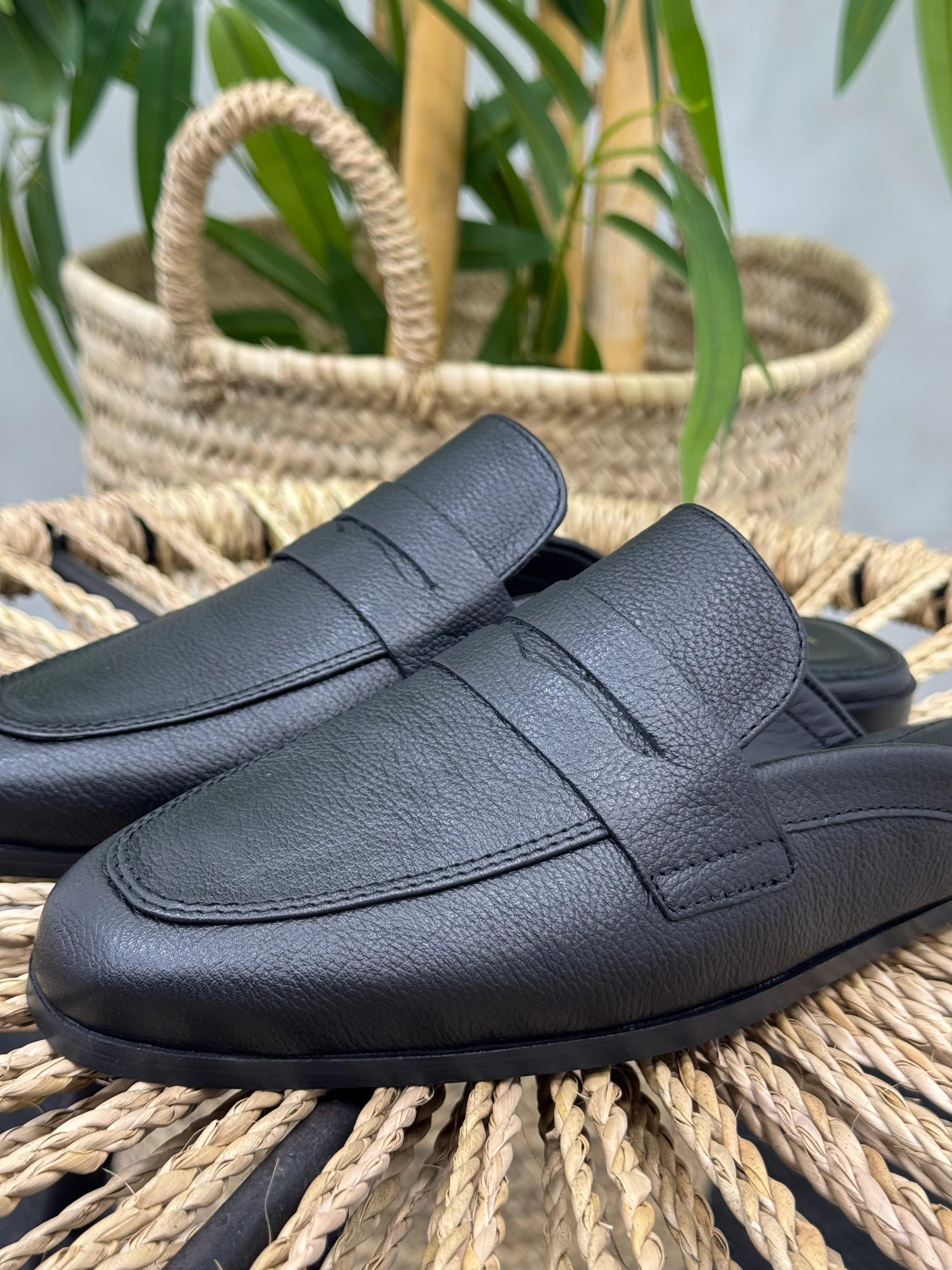 Mules en cuir 100 % véritable - noir