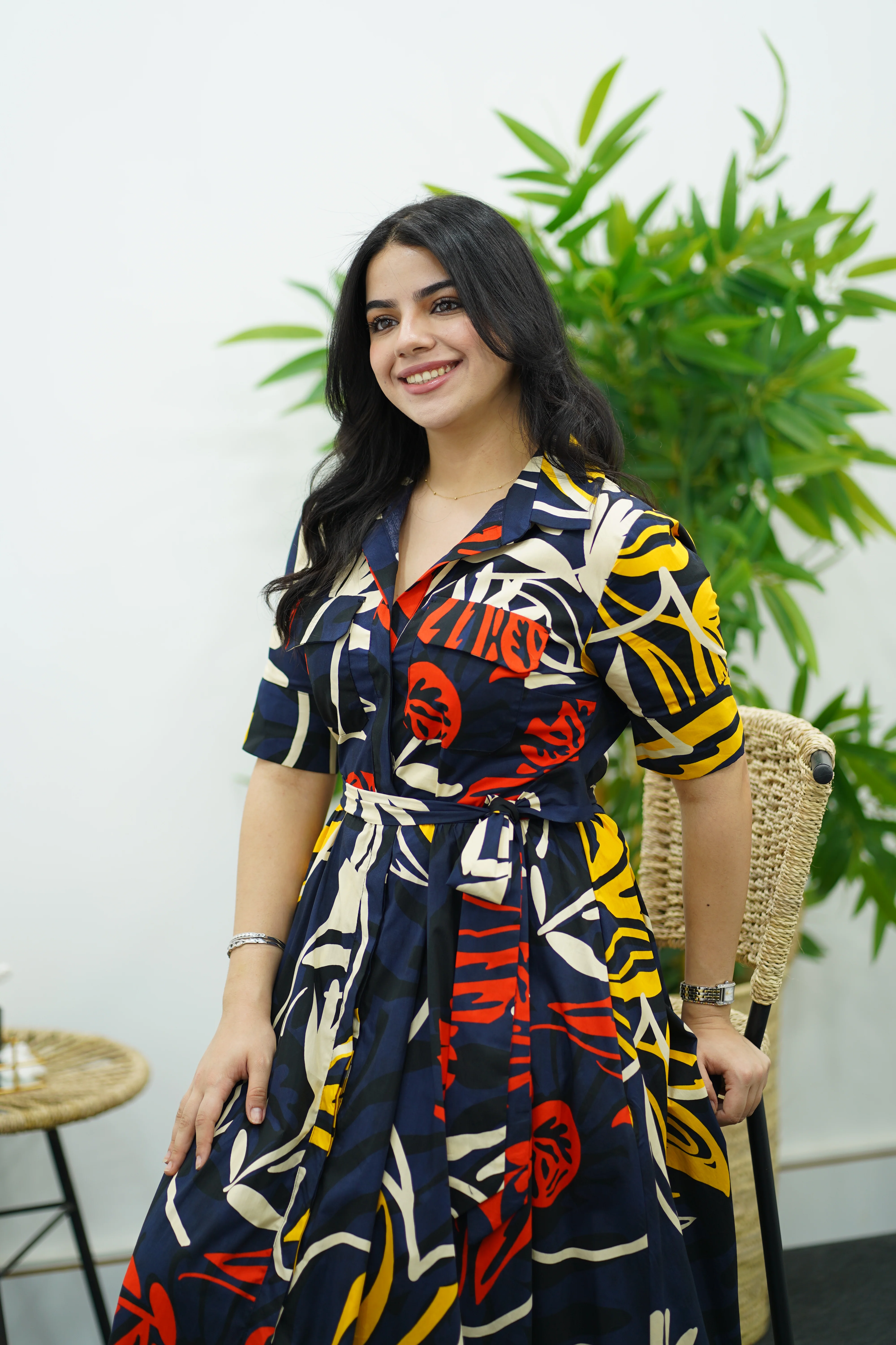 Laissez-vous charmer par cette robe imprimée en popeline, une pièce à la fois vibrante et raffinée. Sa matière en coton léger offre un tombé fluide et une sensation de fraîcheur idéale pour les beaux jours.